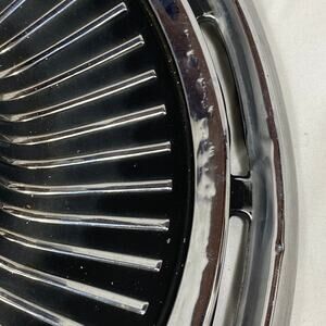Introducing a vintage '63 Buick Riviera LeSabre Hubcap 15” Wheel Hub Cap, also compatible with Electra and Wildcat models. This OEM original part features the classic Buick design from the early 60s, ideal for restoration or collection. This item is used with visible damage and deformation on the edges as shown in the pictures.