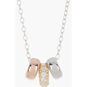 Triple ring details glitter with pavé crystals on a delicate chain necklace to create a stunning accessory piece.