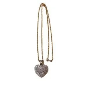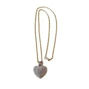 VTG: Circa 90s- retired edition gold plated Swarovski crystals puffy heart rope necklace adorned with sparkling precision-cut crystal pave heart shaped pendant & bail / box clasp closure / hallmark logo by Swarovski.
