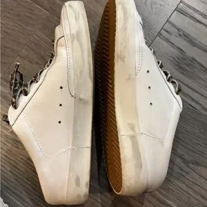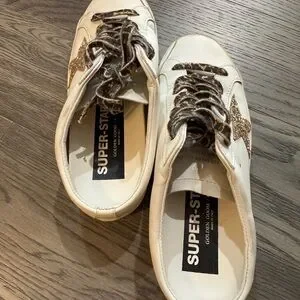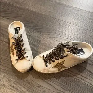 Superstar Sabot Glitter Slide Sneakers size 37 worn once. Cheetah laces and gold glitter star.