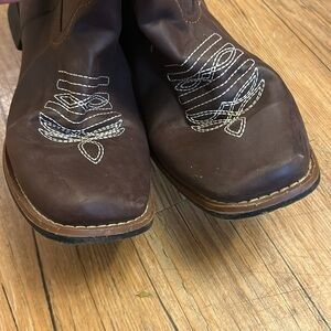 Brown Cowboy Boots with Sunflower Embroidery Size 41
