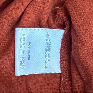 Classic summer wardrobe staple by Modcloth in a easy brick red color in a cool linen and viscose blend. Cropped with a tie front and a chic notched collar. This versatile top is perfect for adding a pop of color to your casual or smart-casual outfits. In good condition.