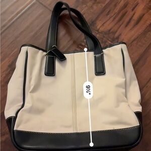Elegant Black and Cream Tote Bag with Leather Accents
