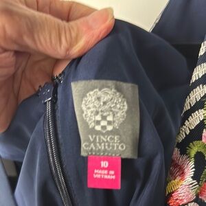 Vince Camuto Navy Floral Midi Dress V neck lined sz 10 NWOT
