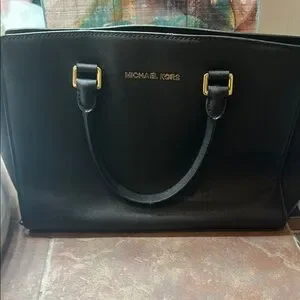 Chic black tote with gold hardware. Perfect for everyday use. Stylish and practical.