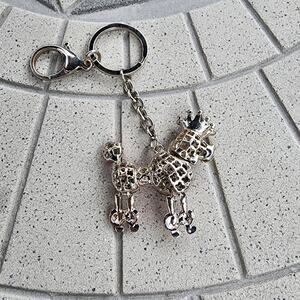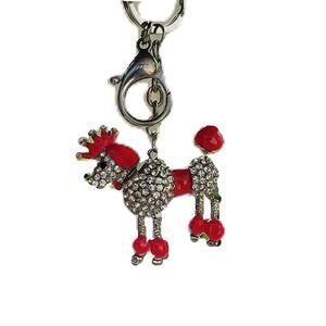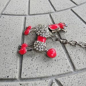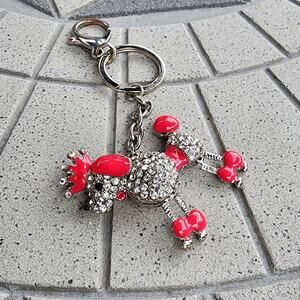 Preloved: Poodle lovers add bling with this silver tone sparkling rhinestone-studded crowned poodle princess keychain/bag charm / hot pink enamel contrast / legs dangle / lobster clasp & keyring options.