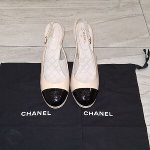 CHANEL Two-Tone Slingback Heels in Beige and Black
