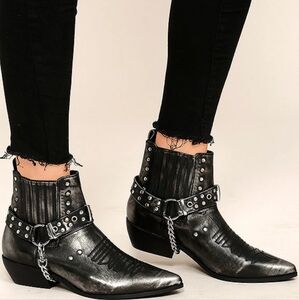 YRU LASO Gunmetal Grey Silver Ankle Boots with Studded Details Size 11 Women's