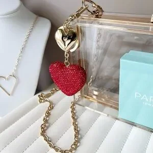 The Sweetheart Purse Charm → a jumbo crystal-red heart paired with a golden puffed heart for double the drama and twice the charm.
