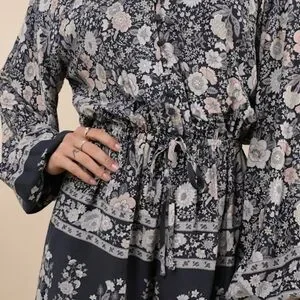 ***NWT***Lulus Traveled Aura Charcoal Grey Boho Button-front Long Sleeve Romper