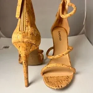 Bebe BERDINE Size 8 Glittery Cork Ankle Strap High Heels Classy Stylish