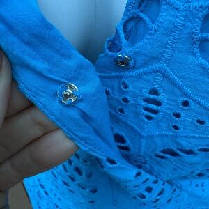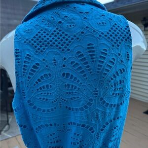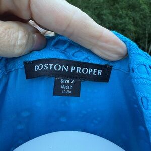 Boston Proper Malibu Blue Eyelet Sleeveless Dress MIDI size 2 side zipper