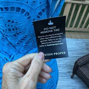 This stunning blue sundress by Boston Proper is perfect for a wedding guest or cocktail event. It features a notched collar and a flattering V-neckline, complemented by cap sleeves. The high-low hemline adds a touch of elegance to its flowing silhouette. NWTS, size 2, smoke/pet free home, fit and glare eyelet midi Malibu blue dress, see pictures for measurements, full lining