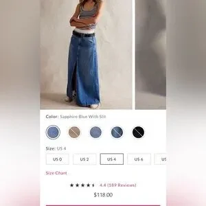 Stylish sapphire blue denim maxi skirt featuring a front slit. Perfect for casual outings.