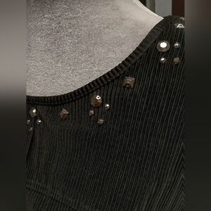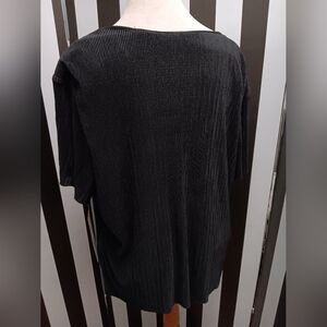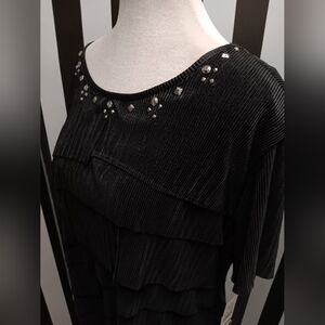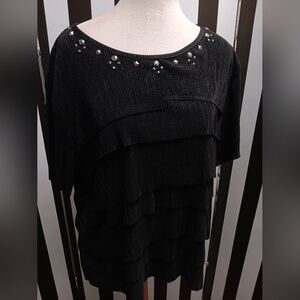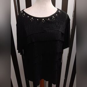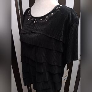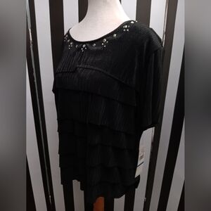 NWT black alfred dunner blouse. tiered layers with grommets on the neckline. lined inside. 100% poly. very soft.