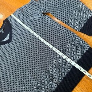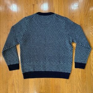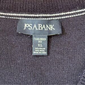 Jos. A. Bank Wool V-Neck Sweater Men's XL Navy Blue White Diamond Patterned Ivy