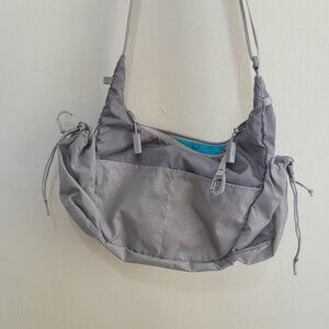 Baboon to the Moon Crescent Crossbody Bag Gray Blue