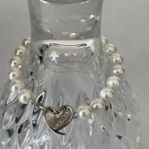 This exquisite bracelet from Mary Kay features a stunning combination of white and silver hues, crafted with beautiful white pear beads that catch the light beautifully. The elegant design is perfect for adding a touch of sophistication. In new condition
