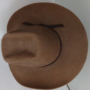 Rockmount Ranch Wear - 100% Wool - Brown Cowboy/Western Hat - size 7 1/8 is a stylish cowboy hat with a dark brown band from a company established in the 1990s.