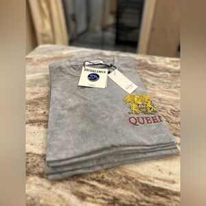 A true merch truck find, this acid wash Merch Tee tributes Queen's 1977 World Tour with their logo stamped on the left chest and the tour details on the back.