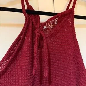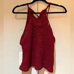 This vibrant red tank top features a cropped design with a ribbed texture, offering a stylish and modern look. The sleeveless cut and fitted silhouette make it perfect for warm weather or layering. Its bold color and unique style make it a standout piece in any wardrobe.