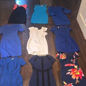 Set of nine dresses all in good condition with no major flaws. All size 2. Brands include Laundry Shelly Segal, Antonio Melani, Gianni Bini, Calvin Klein, Milly, Jax
