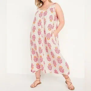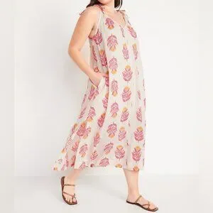 Old Navy Tie Shoulder Floral Sleeveless Maxi Swing Dress Medium Pockets Flowy Summer Wear