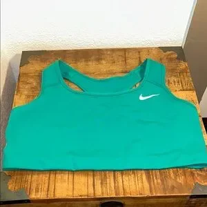 Experience unparalleled comfort and support with the Nike Green Sports Bra, crafted for medium-impact activities. Made from a stretchy, athletic fabric, it offers a snug fit and a scoop neckline for a sleek look. Ideal for both workouts and relaxation, this sports bra is a must-have in your intimates collection.