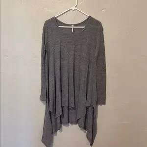 Free People Charcoal Gray Knit Top with Asymmetrical Lines Small