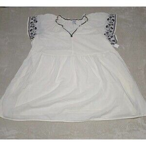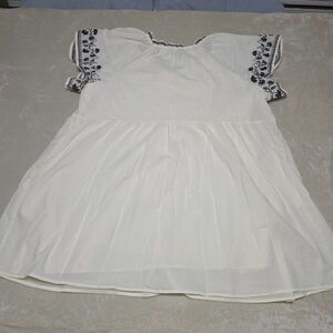 Old Navy 3X Embroidered Mini Swing Dress Creme Black Flutter Boho Pockets