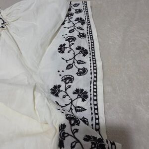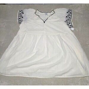 Old Navy 3X Embroidered Mini Swing Dress Creme Black Flutter Boho Pockets Cotton