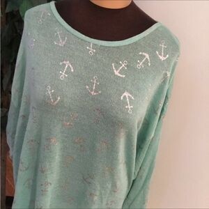 NO Boundaries long sleeve Top Juniors XXL mint green with silver anchors