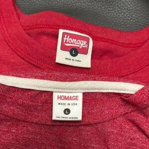 Ohio State Long Sleeve Tee and Short Sleeve Script Ohio HOMAGE set. Both are super soft and comfortable and will show off your Buckeye spirit. Pet and smoke free home. No Rips stains or tears. Long sleeve had slight misprint in O as pictured. Great condition.