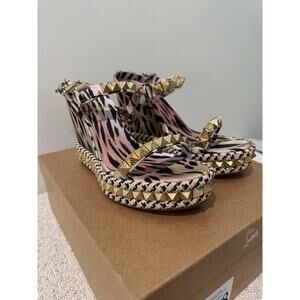 CHRISTIAN LOUBOUTIN Pyraclou 110 leopard-print wedge sandals 38 BNIB