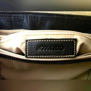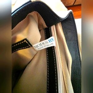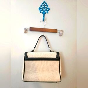 Modus Rio Lauren Flap Bag Brazilian Black Leather & Cream Linen (NWOT)