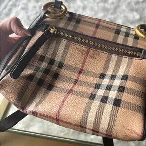 In good condition, there are signs of where which you can see in the pictures. Bought at the Burberry store years ago such a cute bag.