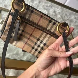 Burberry Bridle Handbag Leather and Haymarket Check crossbody brown