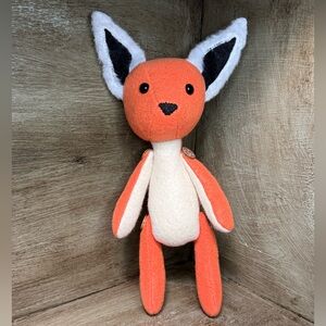 This little fox is full of forest flair and cozy vibes! With its bright orange body, fluffy white tail, and oversized ears, this handmade plush is equal parts cute and clever. It’s ready to trot into your heart (and home) with its woodland whimsy.