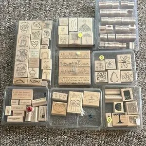 Collection of Stampin' Up! rubber stamps. Features floral, nature, and decorative designs. Perfect for crafting and scrapbooking.
