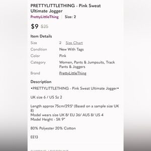PrettyLittleThing Pink Sweat Ultimate Jogger size 2