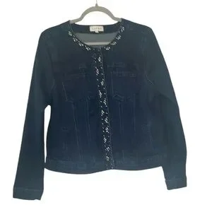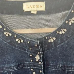 NEW! LAURA of Canada Blue Cropped Denim Jean Jacket Embellished Sequin Accents