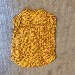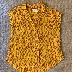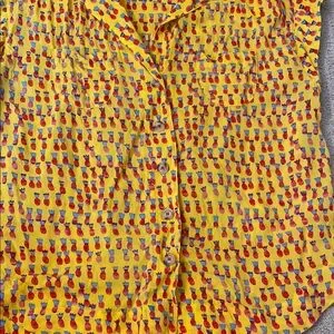 Brighten your wardrobe with this vibrant women's top. Featuring a lively pineapple pattern in yellow, red, and blue, this top is perfect for adding a pop of color to any occasion. Enjoy the comfort and style it brings to your everyday look. Front has functional button closures.