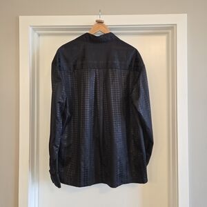 Skilled Senegalese artisans tailored our Gamble button-down, a classic shirt in lustrous satin jacquard with an intricate dotted motif. It has a comfy loose fit and slits at the sides for easy tucking. Pair with our matching Gamble pants.