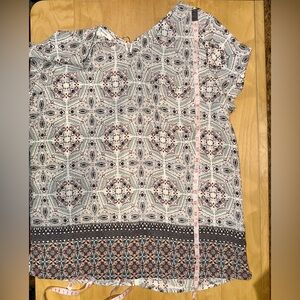 Maurices White and Green Blouse with Playful Pattern and Short Sleeves