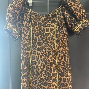 For Love And Lemons Brown Black Puff Sleeve Mini Dress