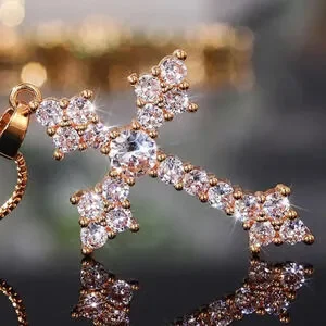 💥White Zircon Filled Cross Beautiful Gold Plated Cross Necklace WomenUNVN12404