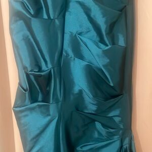 Elegant one shoulder dress by Teri Jon. Stunning teal color. Perfect for formal occasions.