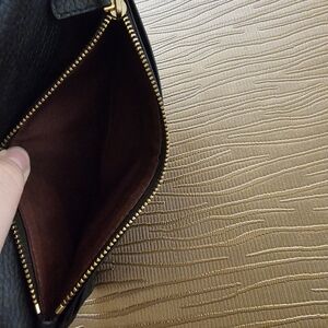 Minor wear. The wallet is clean and in very good condition. It was only used with one purse. Purchased in 2017. No odors.