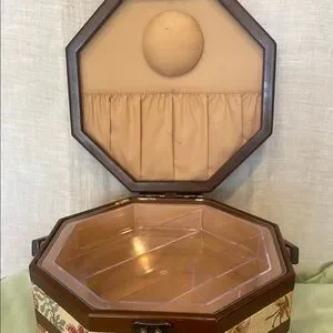 Floral/butterfly tapestry Octagonal Storage Box with Handle -sewing box