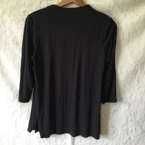 Chic charcoal gray blouse by Dolan. Features a flowing design with a flattering fit; 3/4 sleeves. Ideal for versatile styling.